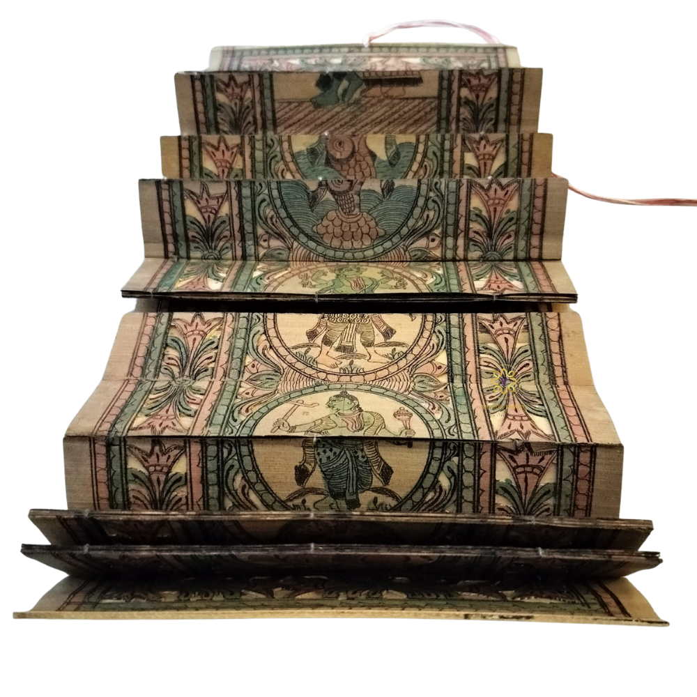 The Dashavatar PattaChitra is a sacred tribute to the ten divine incarnations of Lord Vishnu — exquisitely hand-painted in the timeless Pattachitra tradition. Each panel unfolds a celestial story, from the primordial Matsya to the prophesied Kalki, capturing the essence of dharma, protection, and cosmic balance. Adorned with intricate floral borders and rendered on natural parchment or palm leaf, this scroll is not just an artwork — it’s a spiritual timeline etched in heritage. The Dashavatar PattaChitra brings mythology, art, and devotion together in a form meant to be cherished across generations.