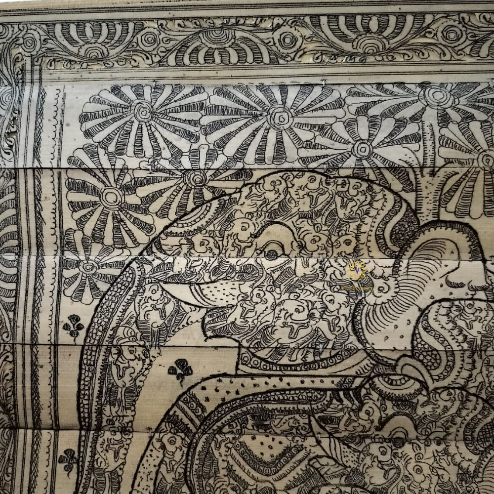 The GajSamriddhi Pattachitra is a striking hand-painted tribute to abundance, harmony, and legacy — captured through the sacred form of a majestic elephant family. Rooted in the revered folk art tradition of Pattachitra, this monochrome marvel is intricately detailed with floral borders, fine motifs, and graceful patterns that embody strength, unity, and prosperity. Whether displayed in a home, temple, or office, GajSamriddhi is more than a painting — it’s a symbol of good fortune, rooted in heritage and timeless elegance.