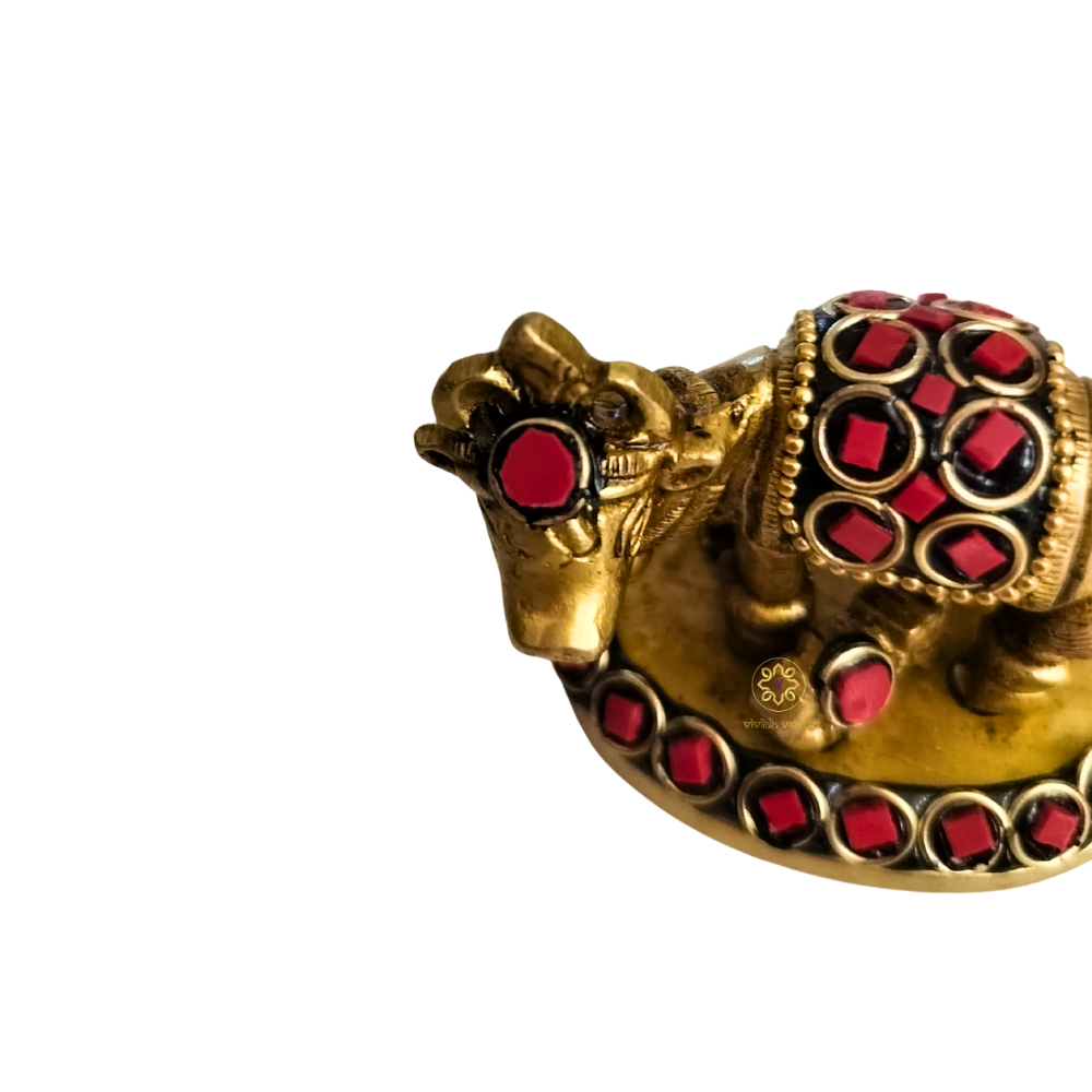 Kamdhenu Saubhagya Red Small – Stonework Finish Brass Cow-Calf Pair on Embellished Base – Brass | Diwali Gifting | Home Decor | Housewarming Gift | Corporate Gifting
