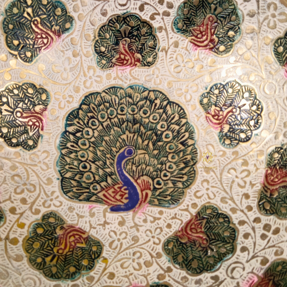 MorDhara Bowl β Brass Meenakari Pedestal Bowl in White with Wavy Rim & Peacock Motifs β Brass | Diwali Gifting | Home Decor | Housewarming Gift | Wedding Gift