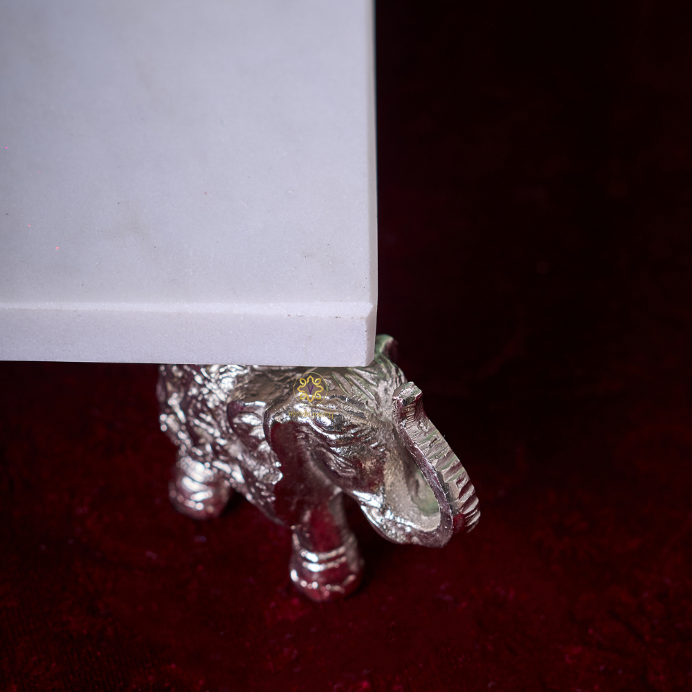 The Shraddha Chowki is a beautifully handcrafted pooja platform with Silver Metal Elephants as its holders, made from pristine white marble, symbolizing purity, devotion, and grace. Adorned with subtle detailing, it serves as the perfect base for idols, lamps, or pooja accessories, making your rituals more sacred and intentional. Whether for daily worship or festive occasions, its timeless design blends effortlessly with both traditional and modern homes. It’s not just a chowki — it’s a pedestal for your faith.
