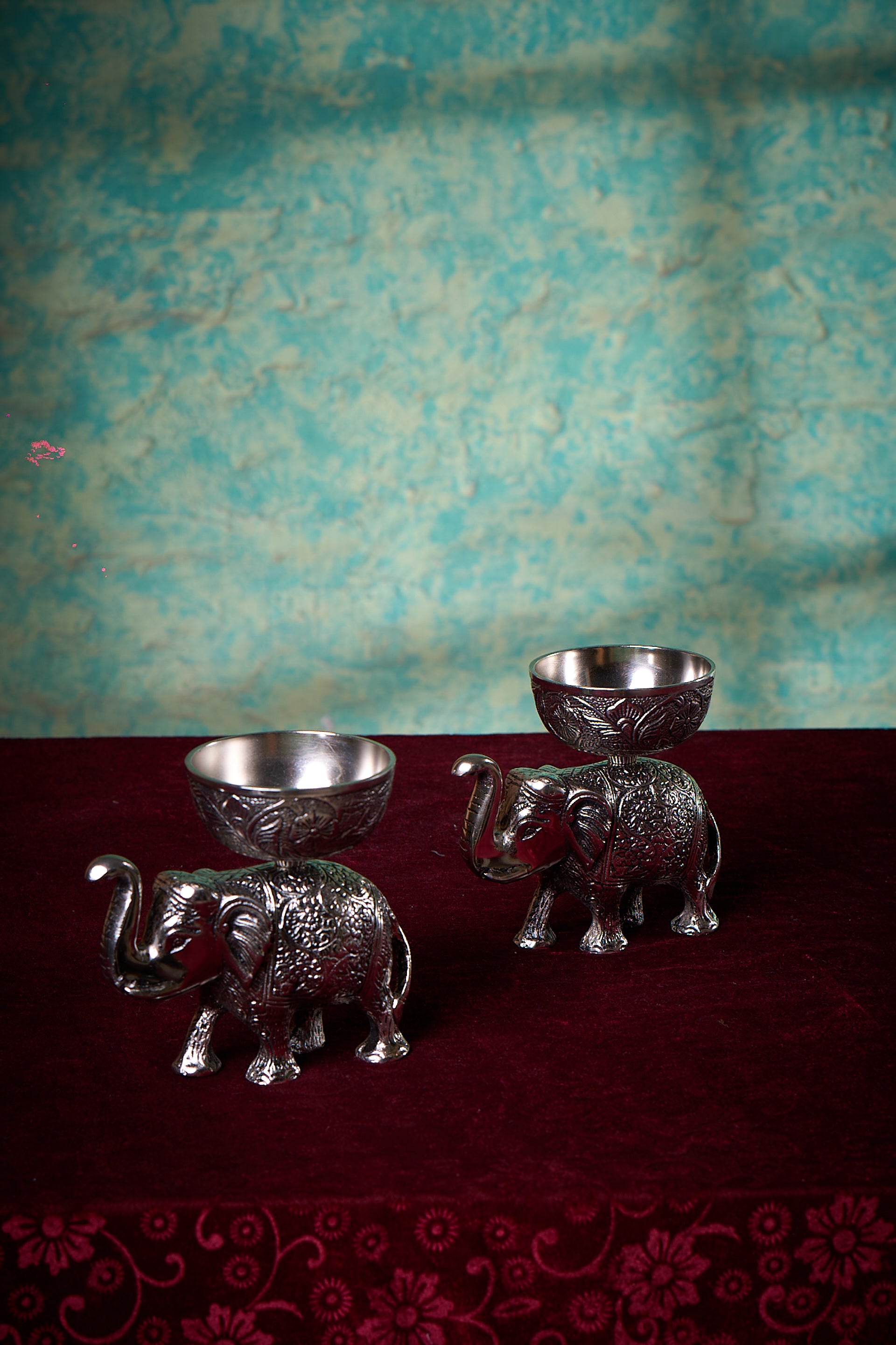 Shubh Haathi Bowls – Carved Elephant Dry Fruit Bowl Set of 2 – Oxidised |Diwali Gifting | Home Decor | Housewarming Gift | Wedding Gift | Corporate Gifting